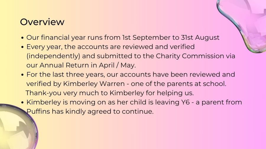 As we look forward to another year, we know that there is an exciting change of Owlsmoor joining an Academy Trust but we also know, the school budget is continuing to be squeezed and we will continue to fundraise, as and when we can. We will continue working closely with Mr Cope and his team, to identify priorities in the school that need investment and support where we can.