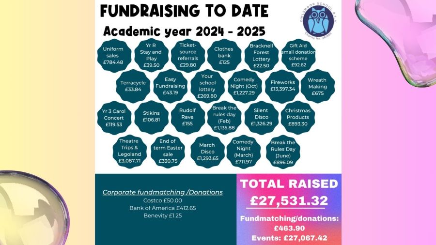 As we look forward to another year, we know that there is an exciting change of Owlsmoor joining an Academy Trust but we also know, the school budget is continuing to be squeezed and we will continue to fundraise, as and when we can. We will continue working closely with Mr Cope and his team, to identify priorities in the school that need investment and support where we can.